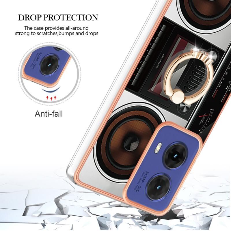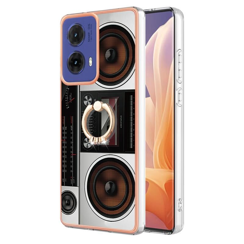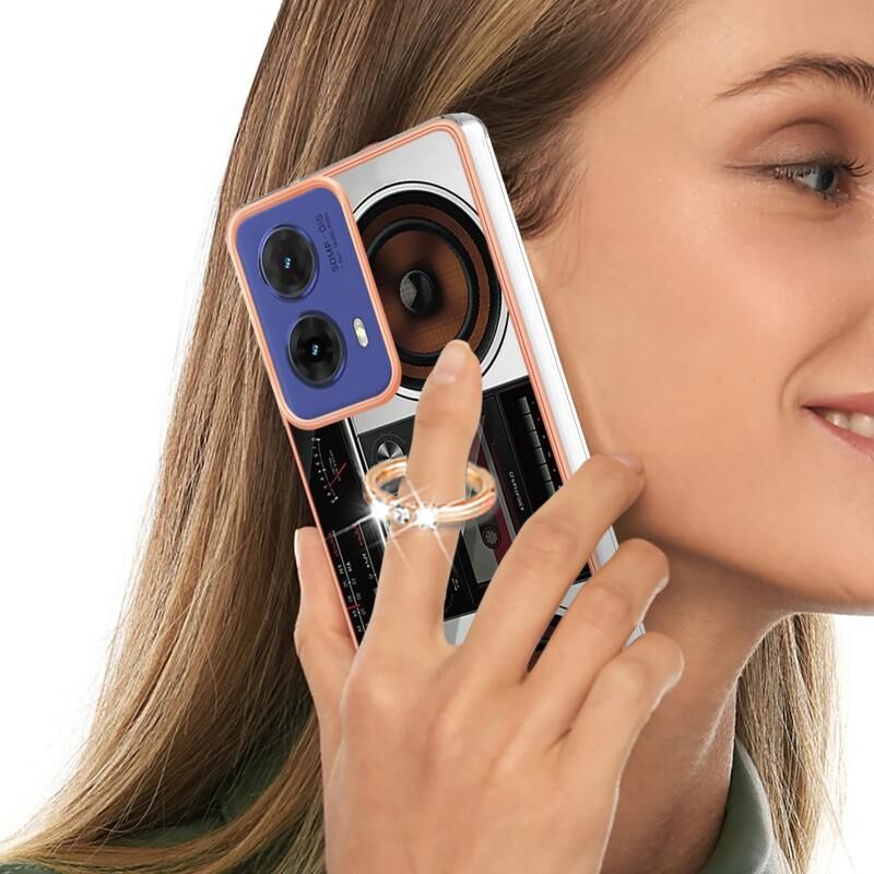 For Motorola Moto G85 Electroplating Dual-side IMD Phone Case with Ring Holder(Retro Radio)