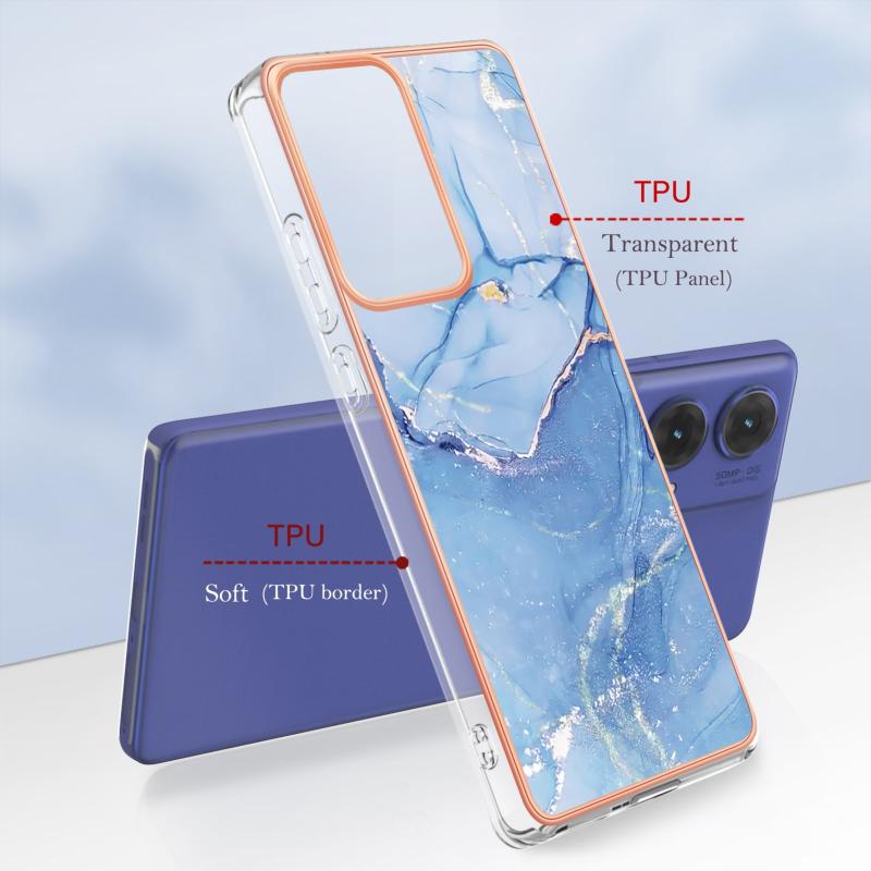For Motorola Moto G85 Electroplating Marble Dual-side IMD Phone Case(Blue 018)