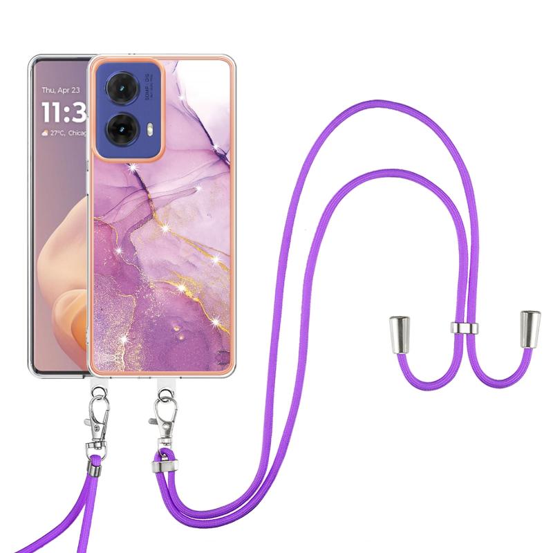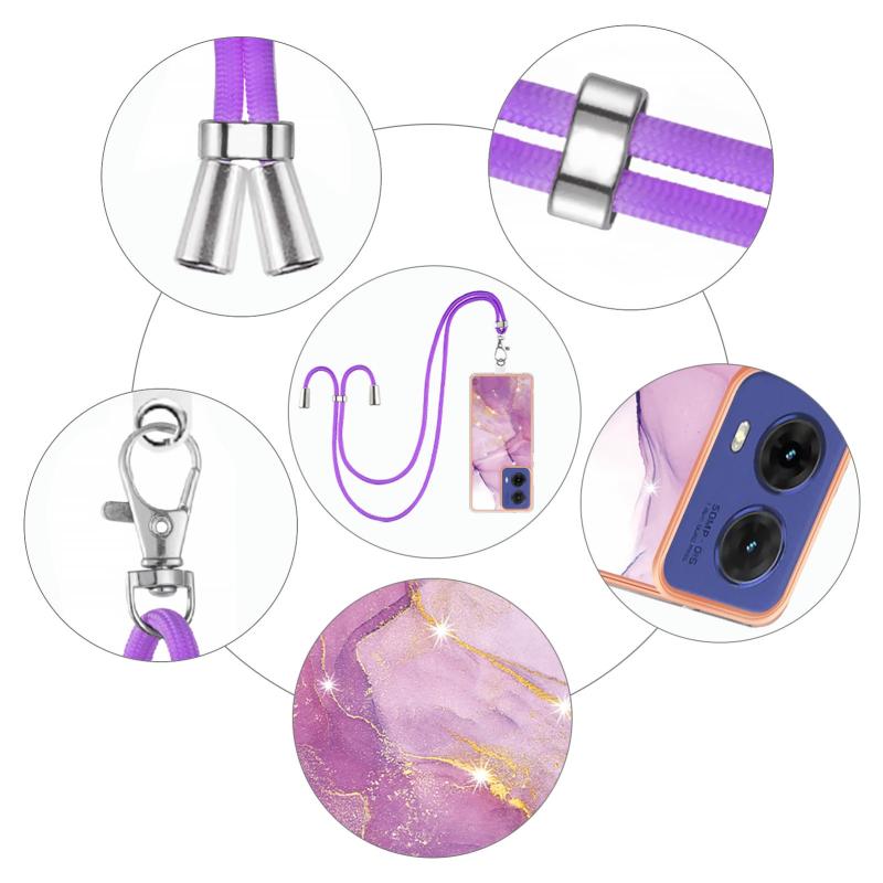 For Motorola Moto G85 Electroplating Marble Dual-side IMD Phone Case with Lanyard(Purple 001)