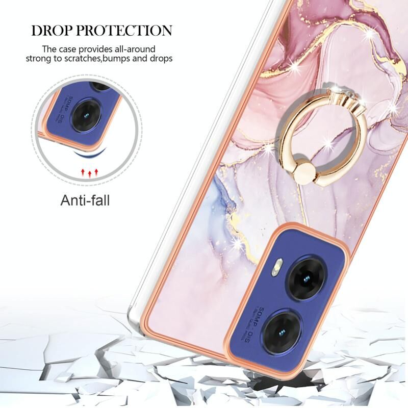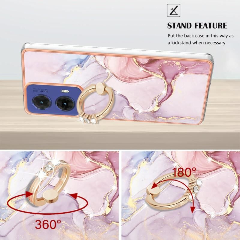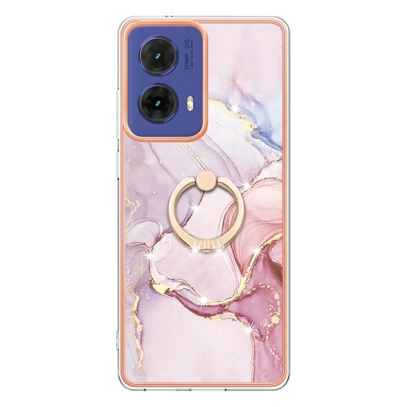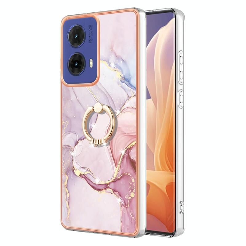 Θήκη κινητού τηλεφώνου για Motorola Moto G85 με ηλεκτρολυτική επίστρωση, σχέδιο μάρμαρου IMD, από TPU με δακτύλιο στήριξης (Ροζ Χρυσός 005)