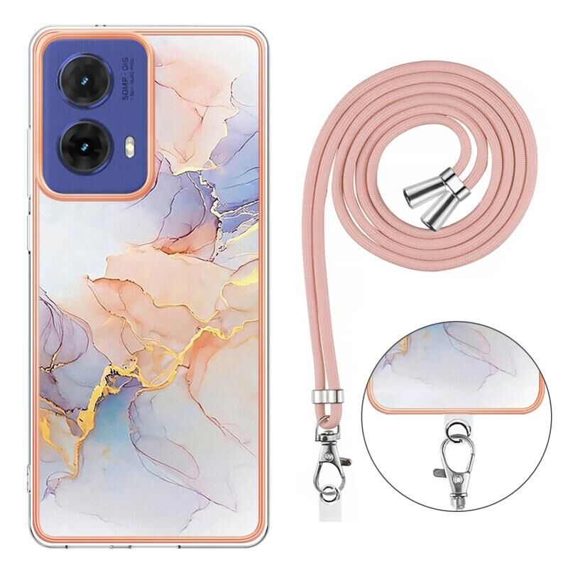 Θήκη για Motorola Moto G85 με σχέδιο επιμετάλλωσης IMD, αντικραδασμική από TPU με λουρί λαιμού (Λευκό Μάρμαρο Γαλαξία)