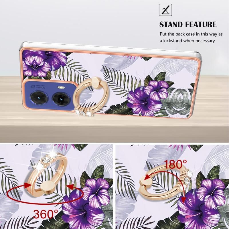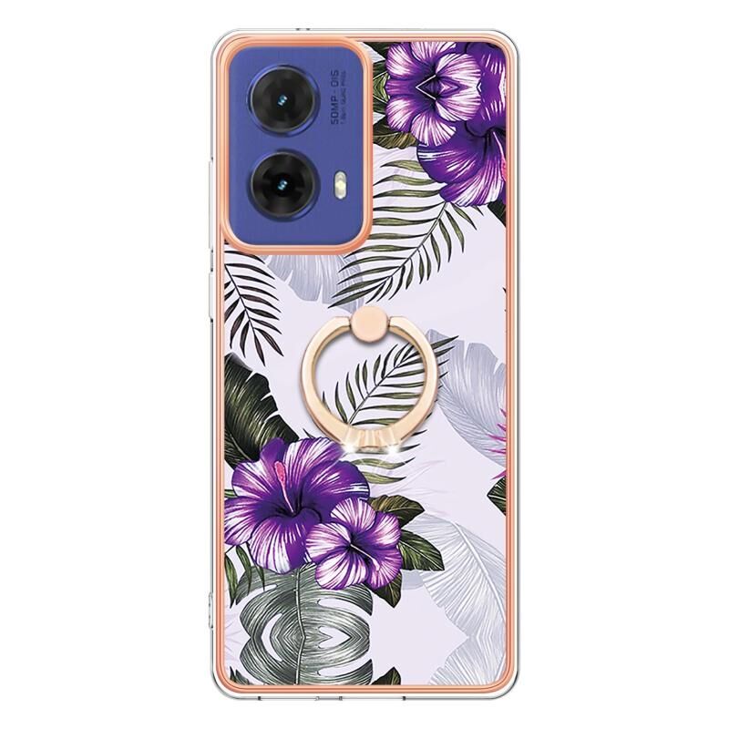 Θήκη για Motorola Moto G85 με Επικάλυψη Ηλεκτρολυτικής Επεξεργασίας, Μοτίβο IMD, Αντικραδασμική από TPU με Δαχτυλίδι Στήριξης και Κρύσταλλα (Λευκό Μάρμαρο Γαλαξία)