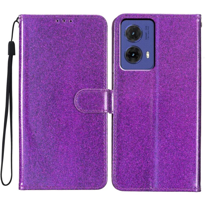 Θήκη τηλεφώνου από δέρμα με γυαλιστερή πούδρα για Motorola Moto G85 (Μαύρο)