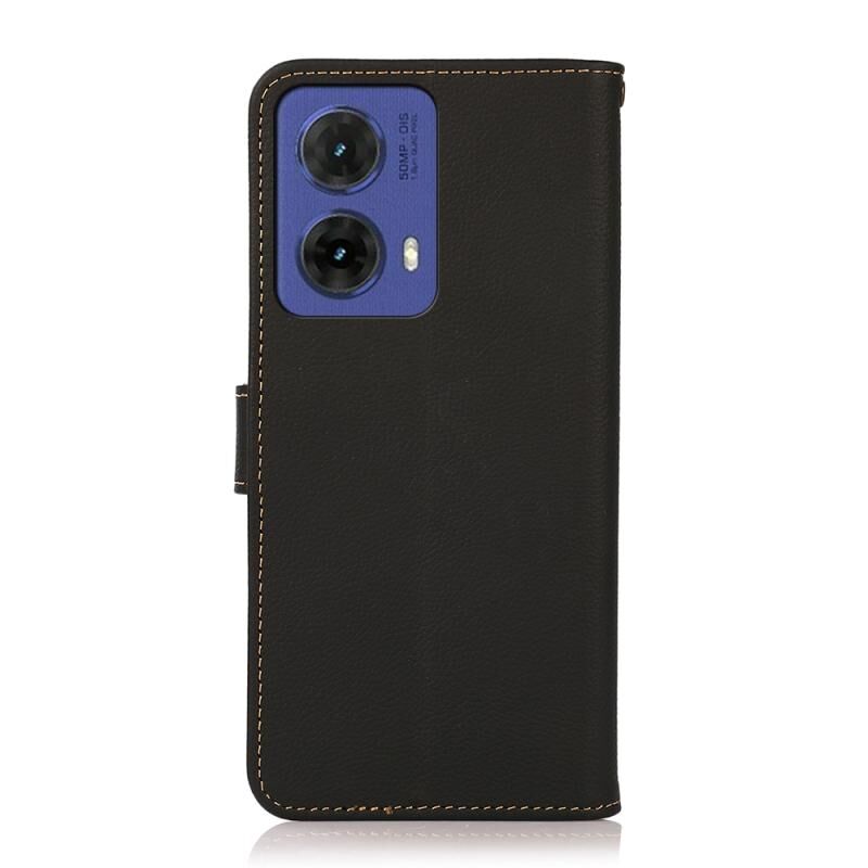 Θήκη κινητού τηλεφώνου Motorola Moto G85 KHAZNEH Custer από γνήσιο δέρμα με προστασία RFID (Μαύρο)