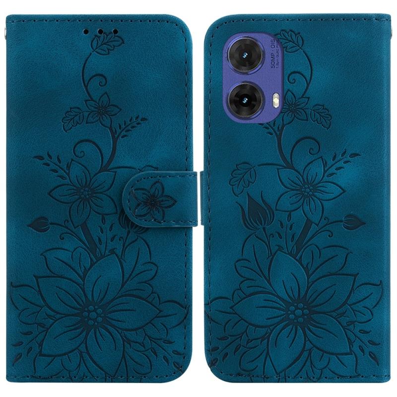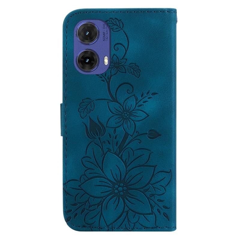 For Motorola Moto G85 Lily Embossed Leather Phone Case(Dark Blue)