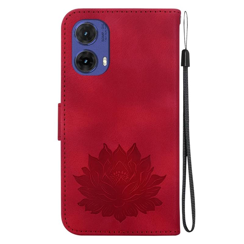 For Motorola Moto G85 Lotus Embossed Leather Phone Case(Red)