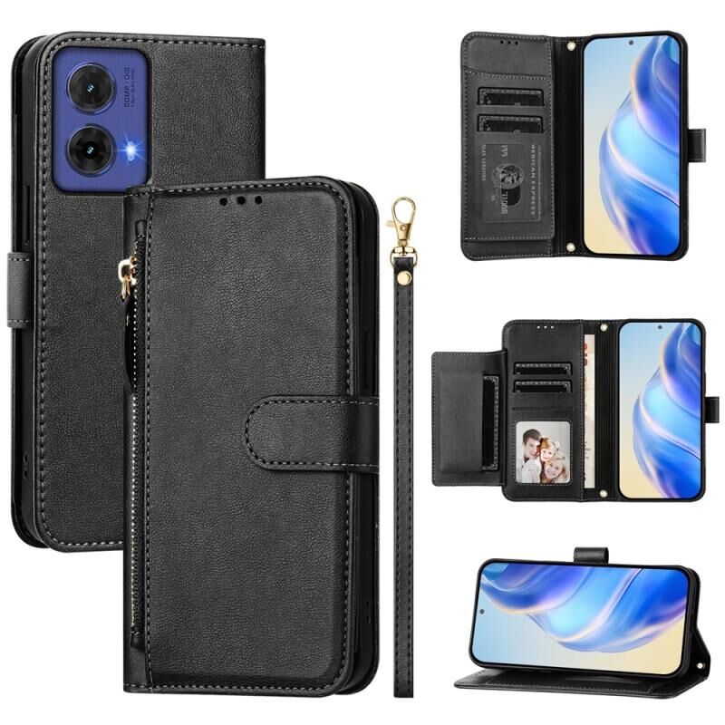 Θήκη τηλεφώνου δερμάτινη με φερμουάρ και πολλαπλές θήκες καρτών για Motorola Moto G85 (Μαύρο)