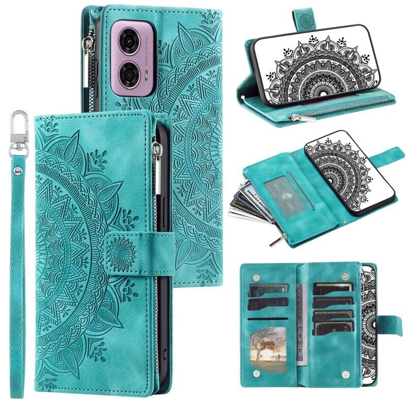 For Motorola Moto G85 Multi-Card Totem Zipper Leather Phone Case(Green)
