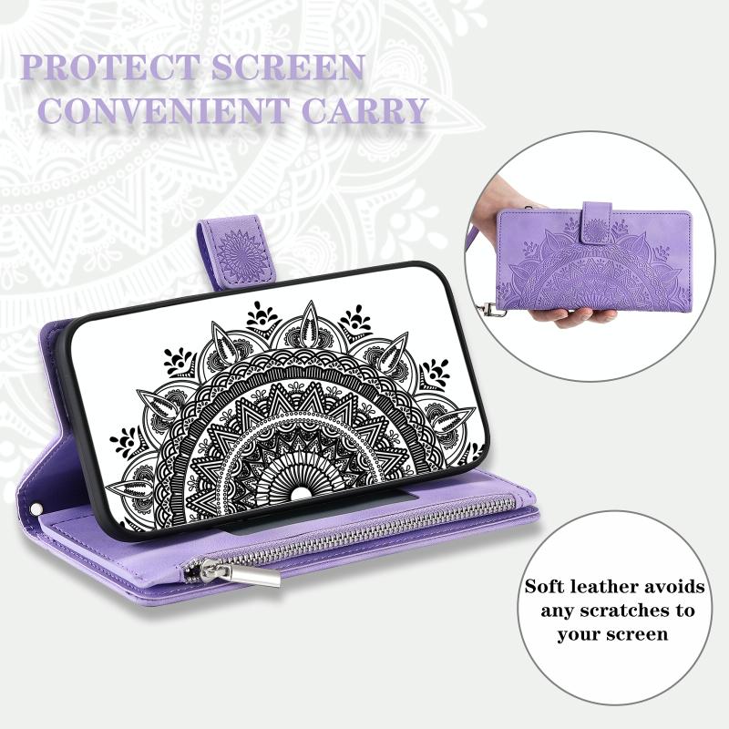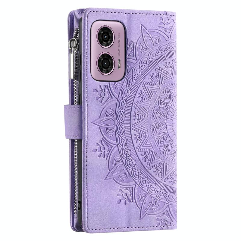 For Motorola Moto G85 Multi-Card Totem Zipper Leather Phone Case(Purple)