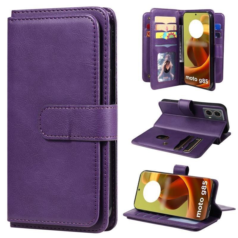 Για Motorola Moto G85 Πολυλειτουργικό πορτοφόλι 10 υποδοχές καρτών Δερμάτινη θήκη τηλεφώνου (Violet)