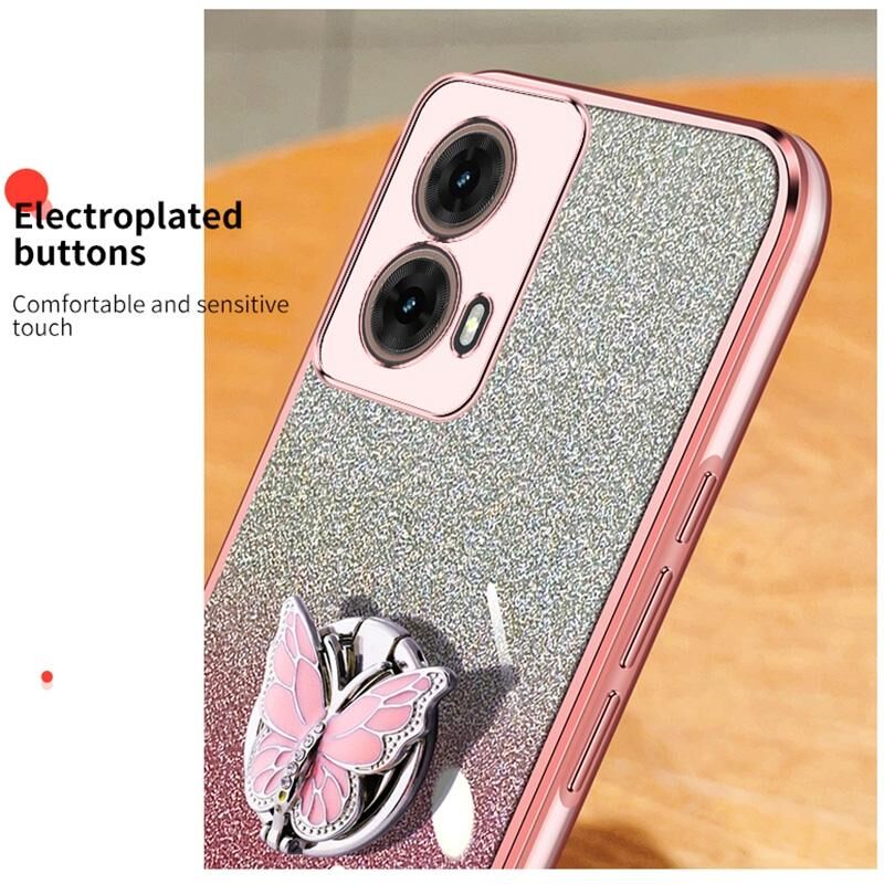 Για Motorola Moto G85 Επιμεταλλωμένο διαβάθμιση Glitter πεταλούδα κάτοχος TPU τηλέφωνο υπόθεση (μαύρο)