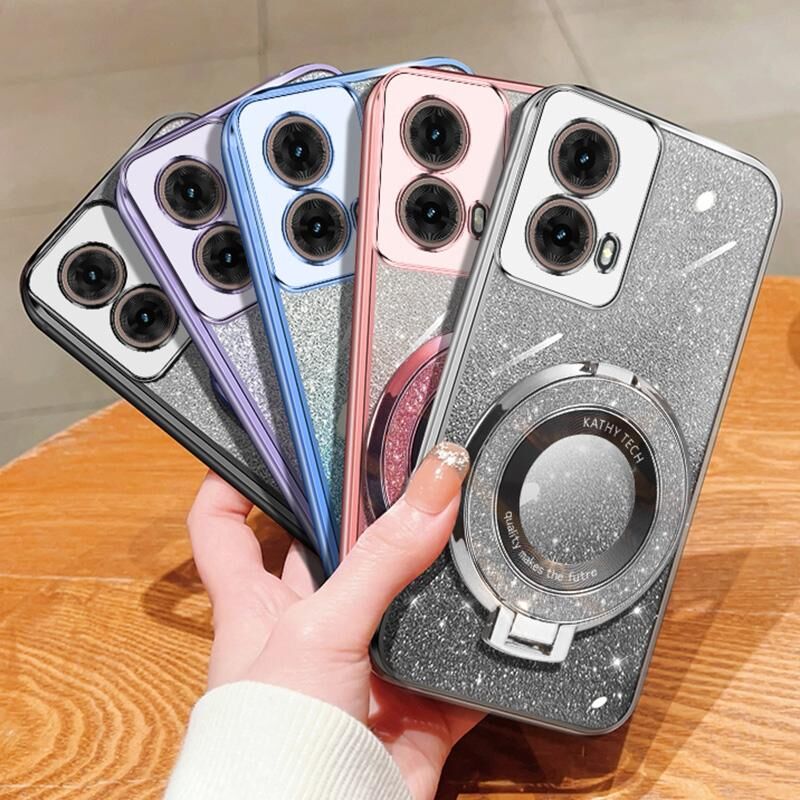 Για Motorola Moto G85 Επιμεταλλωμένο βαθμιδωτή Glitter στρογγυλή θήκη TPU τηλέφωνο κάτοχος (Μαύρο)