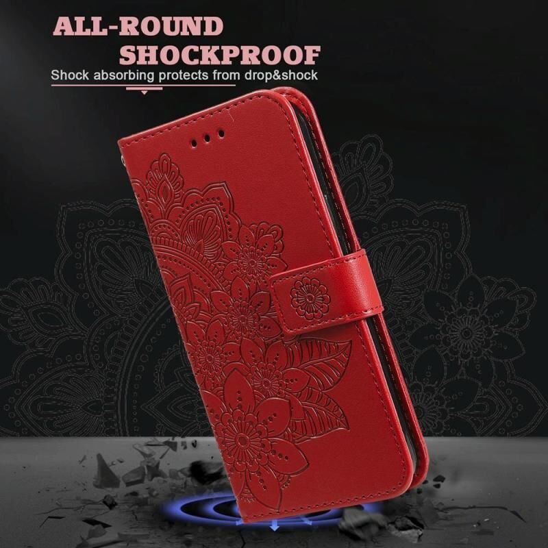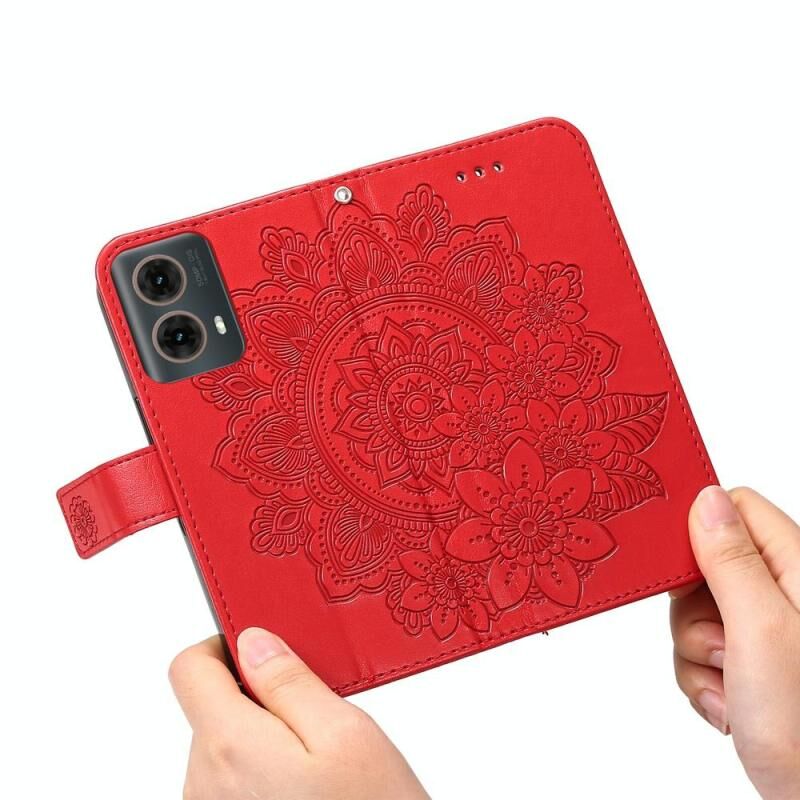 Θήκη τηλεφώνου από δέρμα με ανάγλυφο επτάπεταλα λουλούδια για Motorola Moto G85 / S50 Neo (Κόκκινο)