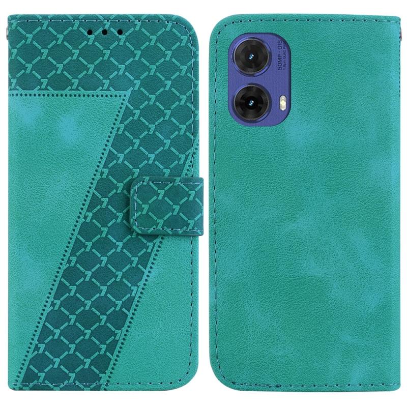 Θήκη τηλεφώνου από δέρμα με ανάγλυφο σχέδιο σε σχήμα επτά για Motorola Moto G85 (πράσινο)