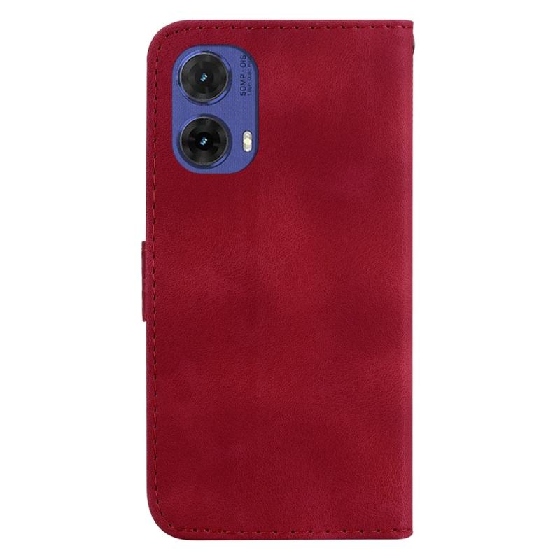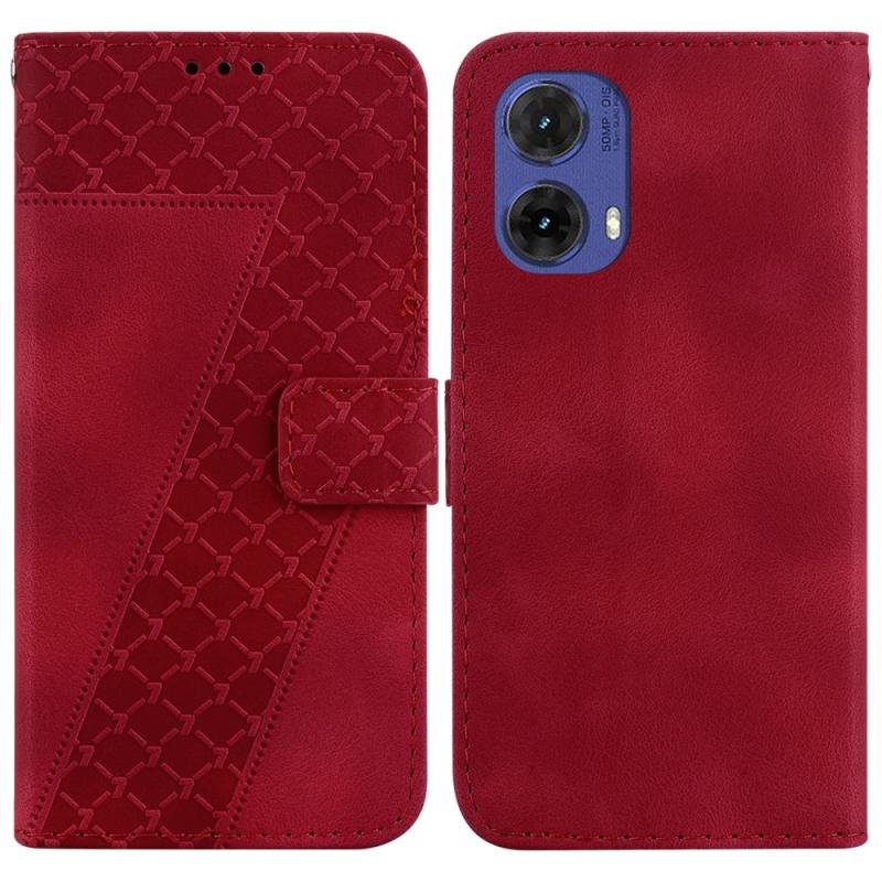 Θήκη τηλεφώνου από δέρμα με ανάγλυφο σχέδιο σε σχήμα επτά για Motorola Moto G85 (Κόκκινο)