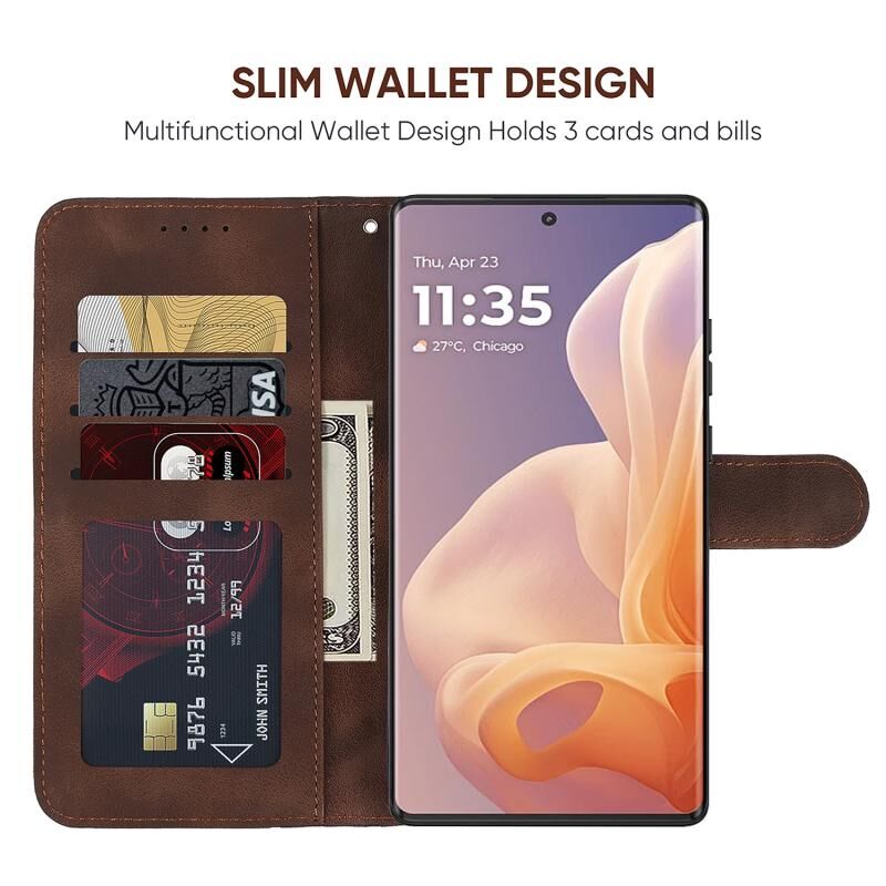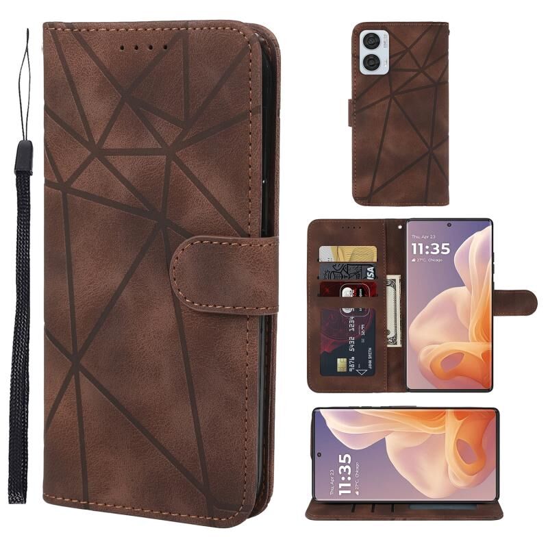 Για Motorola Moto G85 Skin Feel γεωμετρικές γραμμές δερμάτινη θήκη τηλεφώνου (καφέ)