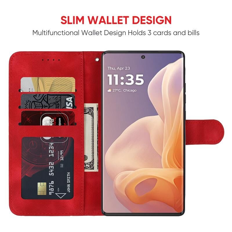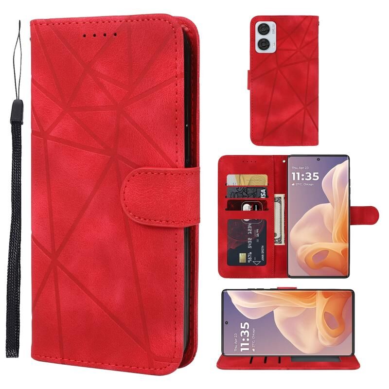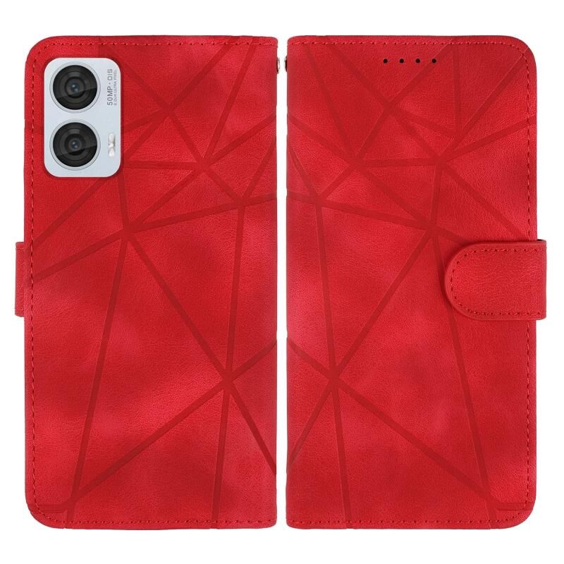 Για Motorola Moto G85 Skin Feel Γεωμετρικές γραμμές δερμάτινη θήκη τηλεφώνου (κόκκινο)
