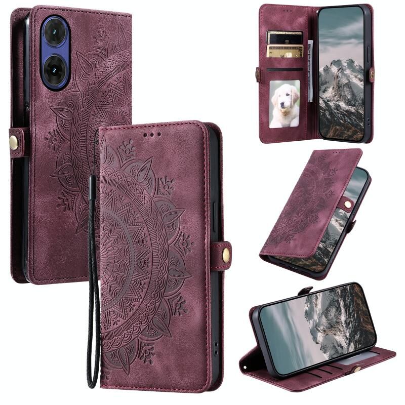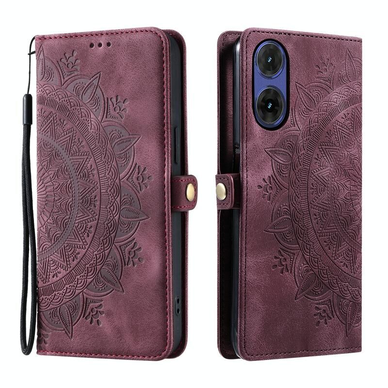 Για Motorola Moto G85 Skin Feel Totem ανάγλυφη δερμάτινη θήκη τηλεφώνου (κόκκινο κρασί)