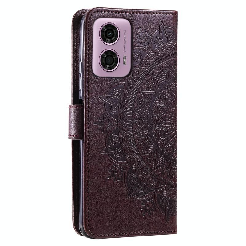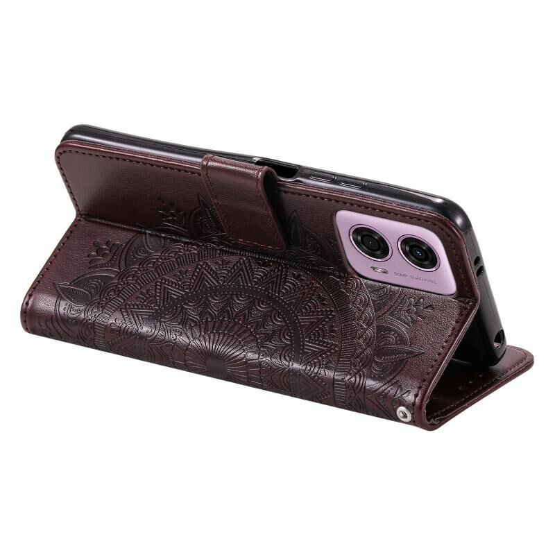 Για Motorola Moto G85 Totem λουλούδι ανάγλυφο δερμάτινη θήκη τηλεφώνου με κορδόνι (καφέ)