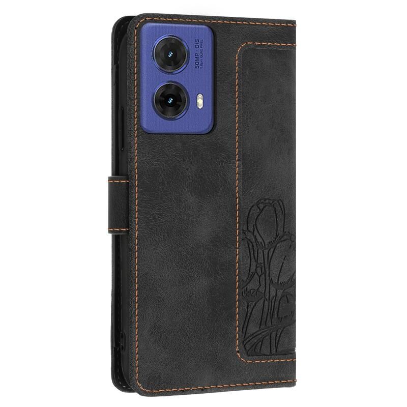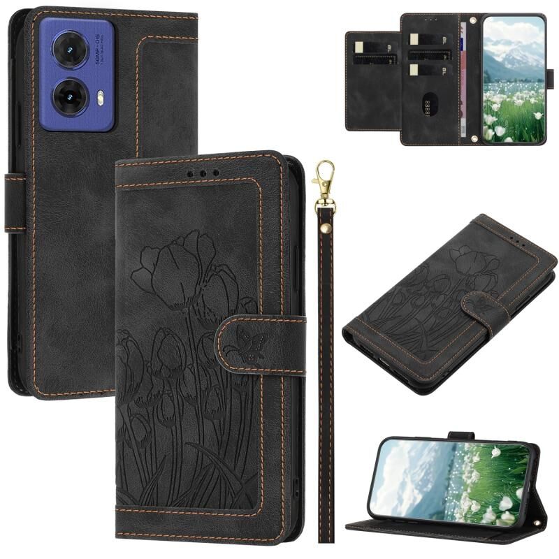 Θήκη κινητού τηλεφώνου από δέρμα με ανάγλυφα τουλίπες για Motorola Moto G85 με κορδόνι (Ροζ)