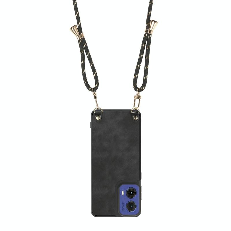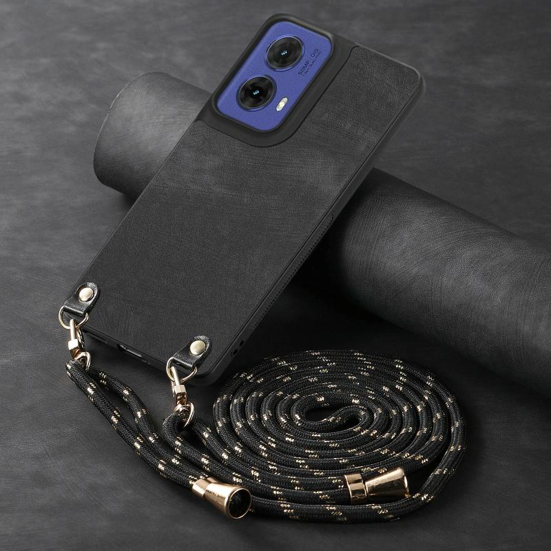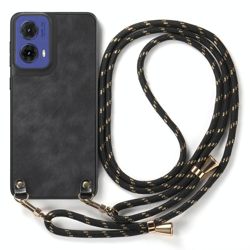 Θήκη κινητού τηλεφώνου Motorola Moto G85 με δερμάτινη πλάτη από PC σε vintage στυλ με λουρί crossbody (Μπλε)