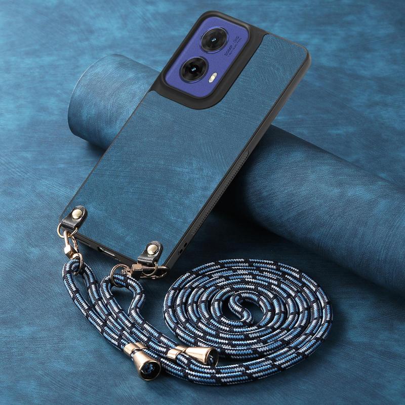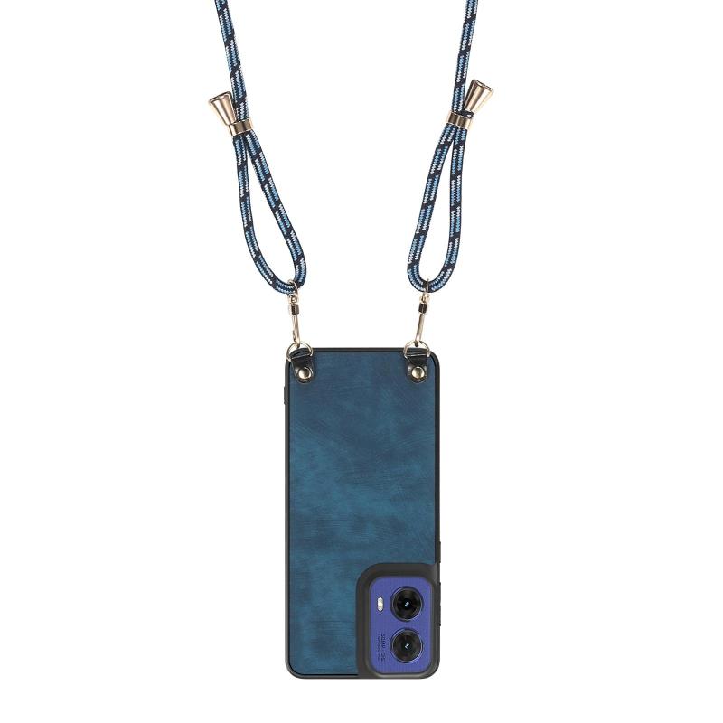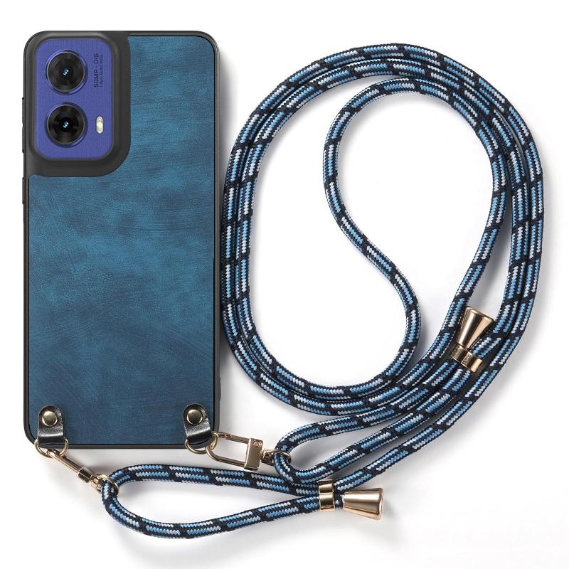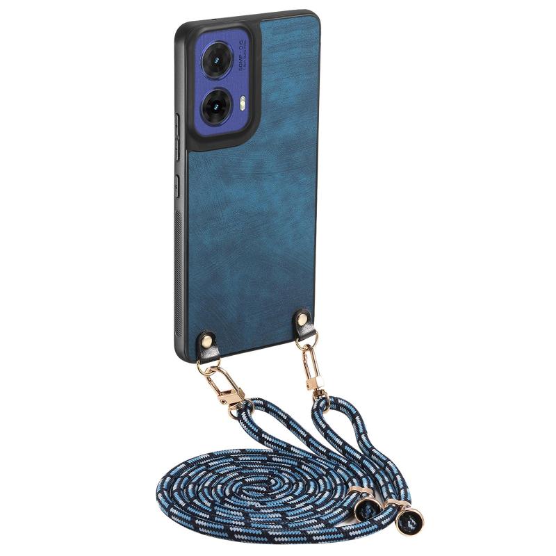 Θήκη κινητού τηλεφώνου Motorola Moto G85 με δερμάτινη πλάτη από PC σε vintage στυλ με λουρί crossbody (Μπλε)