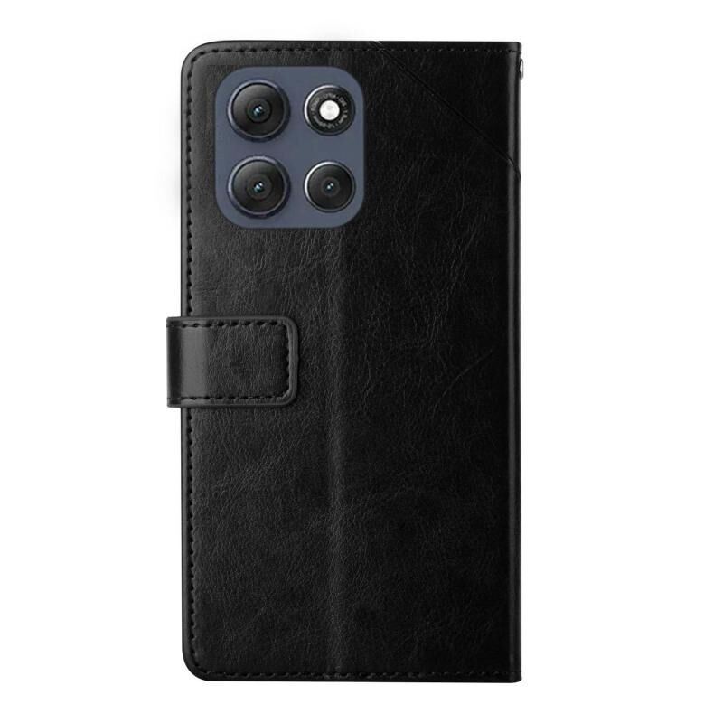 Θήκη τηλεφώνου από δέρμα με σχέδιο σε σχήμα Υ για Motorola Moto G86 5G HT01 (Μαύρο)