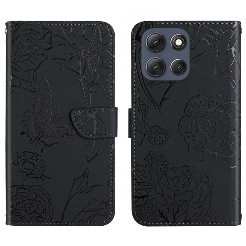 For Motorola Moto G86 5G HT03 Skin Feel Butterfly Embossed Flip Leather Phone Case(Black)