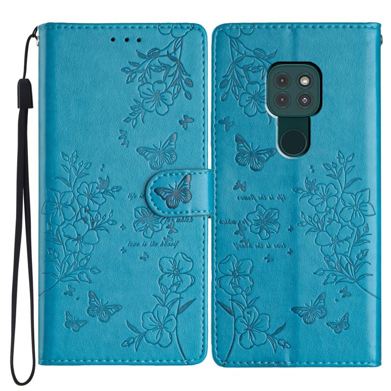 For Motorola Moto G9 / G9 Play Butterflies and Flowers Leather Phone Case(Blue)