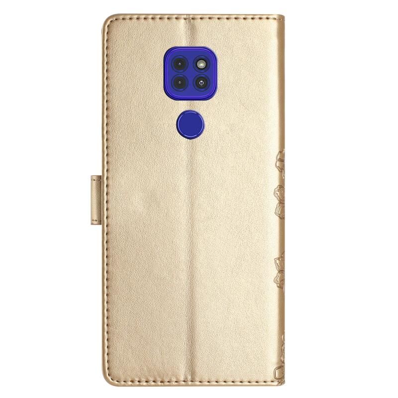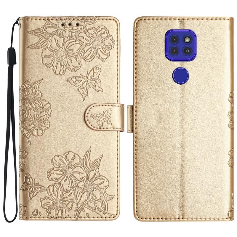 Θήκη τηλεφώνου Motorola Moto G9 / G9 Play Cherry Blossom Butterfly με ανάγλυφο PU υλικό (Χρυσός)