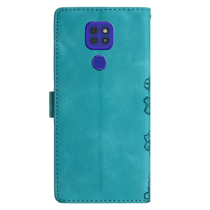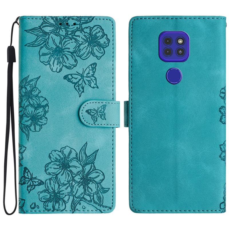 For Motorola Moto G9 / G9 Play Cherry Blossom Butterfly Skin Feel Embossed PU Phone Case(Green)