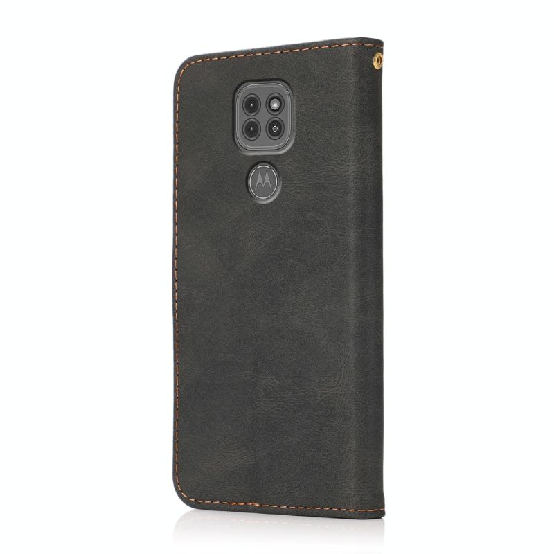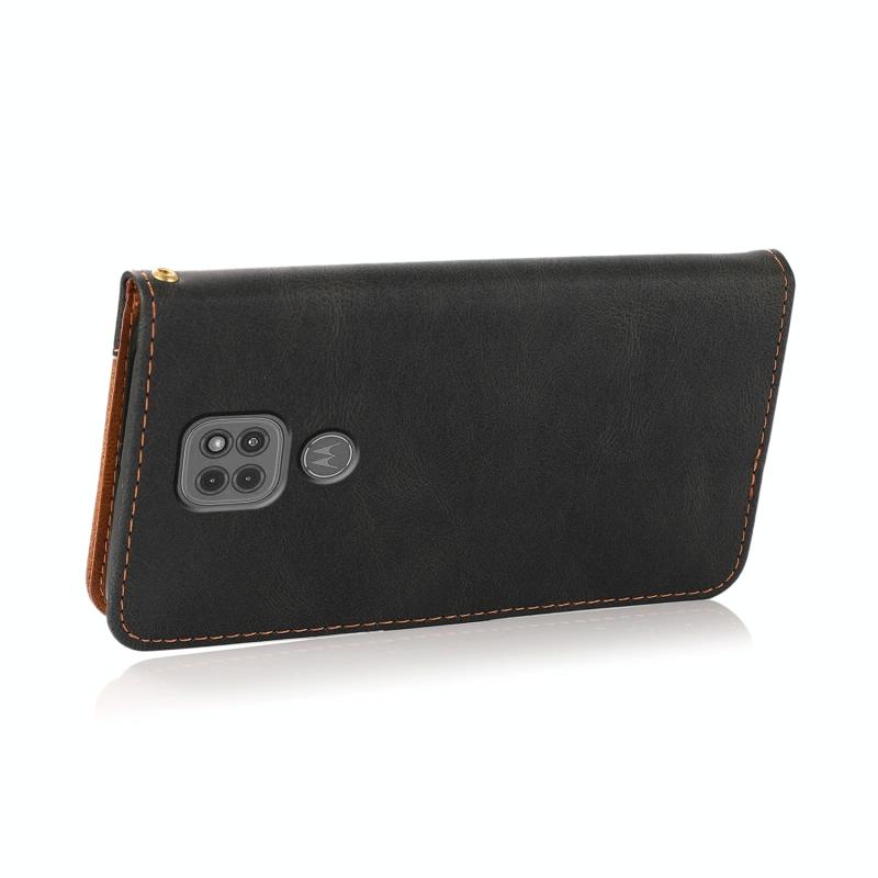 Θήκη τηλεφώνου δερμάτινη με διχρωμία ραφής για Motorola Moto G9 / G9 Play / E7 Plus (Μαύρο καφέ)