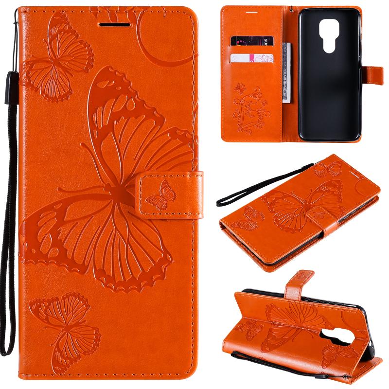 For Motorola Moto G9 Play 3D Butterflies Embossing Pattern Horizontal Flip Leather Case with Holder & Card Slot & Wallet(Orange)