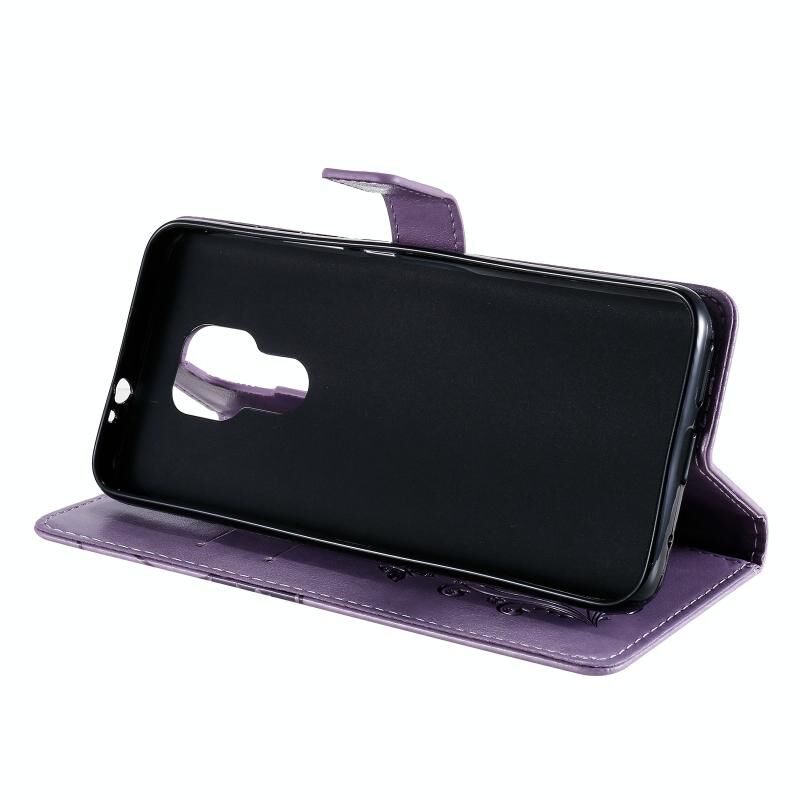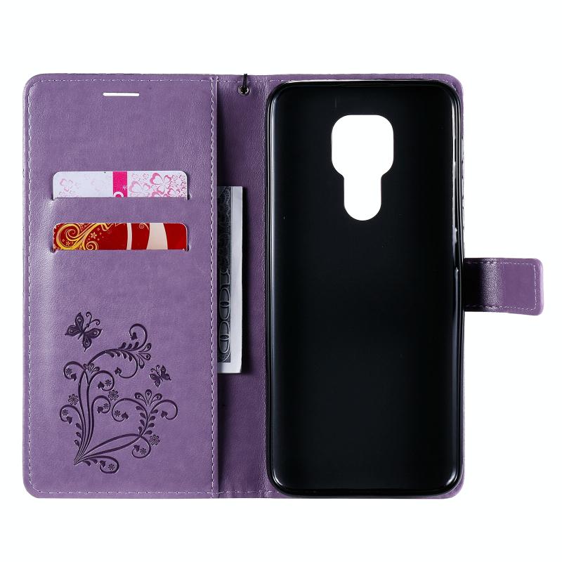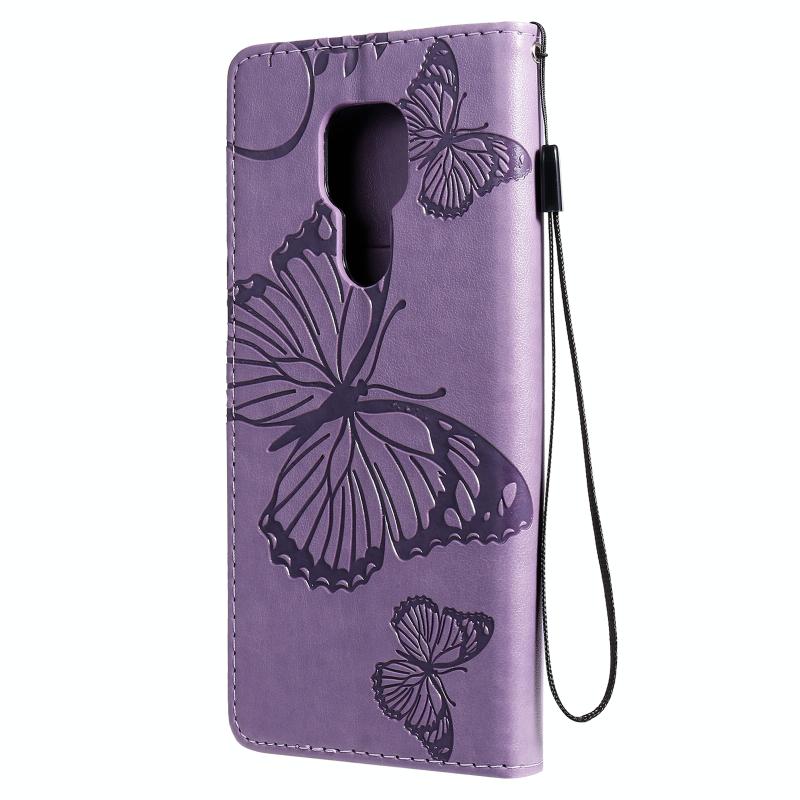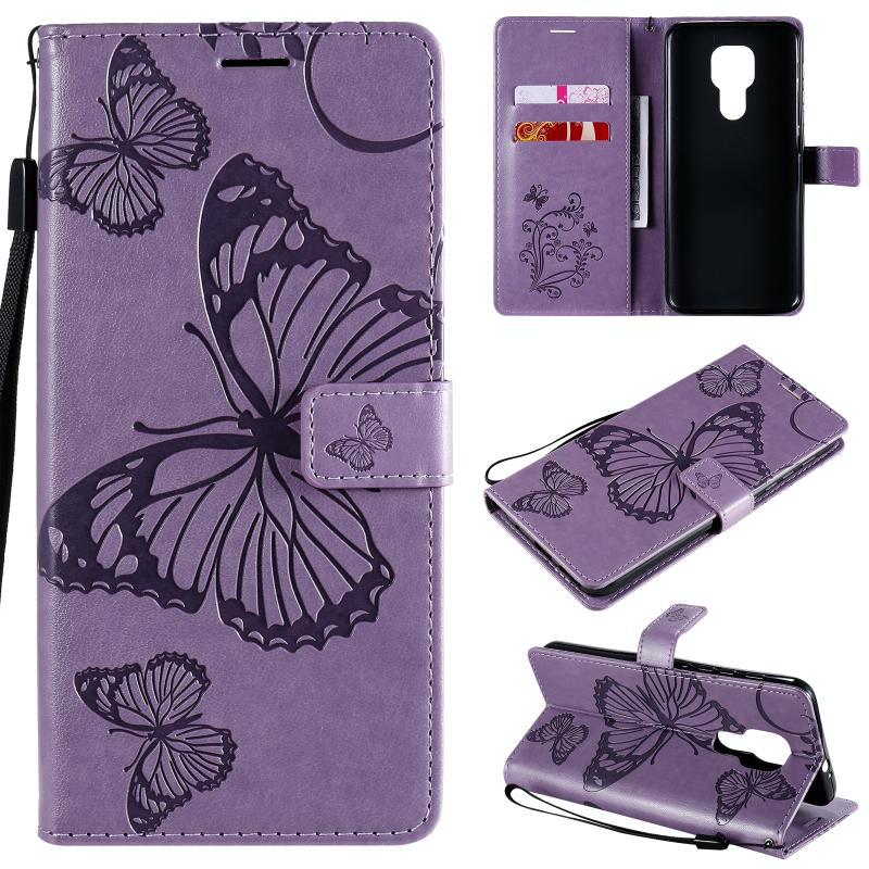 Θήκη δέρματος οριζόντιας αναδίπλωσης για Motorola Moto G9 Play με ανάγλυφο σχέδιο 3D πεταλούδων, με βάση στήριξης & υποδοχή κάρτας & πορτοφόλι (Χρυσό Ρόδινο)