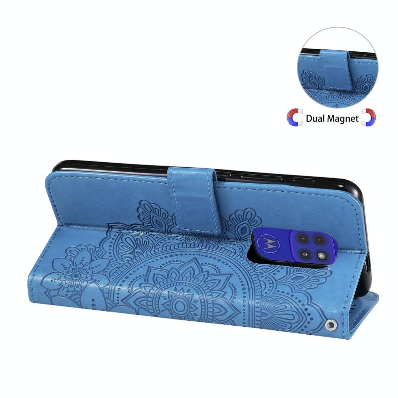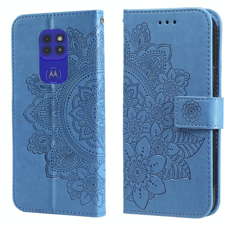 Για Motorola Moto G9 Play / E7 Plus Θήκη οριζόντιας αναδίπλωσης από δερματίνη PU με ανάγλυφο σχέδιο 7 πέταλων, με βάση στήριξης & υποδοχές καρτών & πορτοφόλι & κορνίζα φωτογραφιών (Χρυσό Ρόδι)