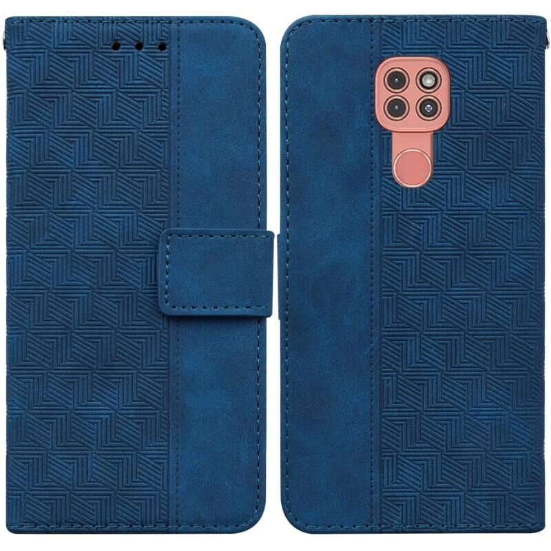 Για Motorola Moto G9 Play / E7 Plus Γεωμετρική ανάγλυφη δερμάτινη θήκη τηλεφώνου (μπλε)