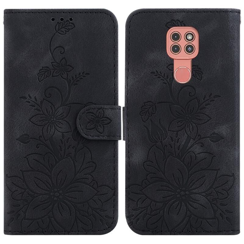 Θήκη τηλεφώνου δερμάτινη ανάγλυφη Lily για Motorola Moto G9 Play / E7 Plus (Μαύρο)