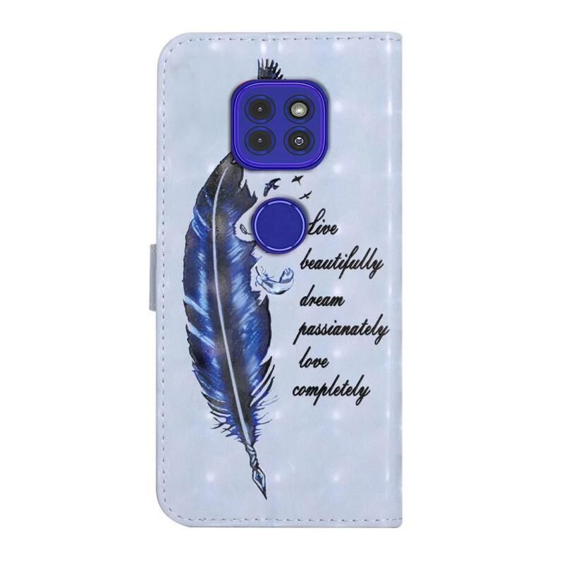 Θήκη τηλεφώνου δερμάτινη με ανάγλυφο σχέδιο λαδιού 3D για Motorola Moto G9 Play / E7 Plus (Μπλε Πεταλούδες)