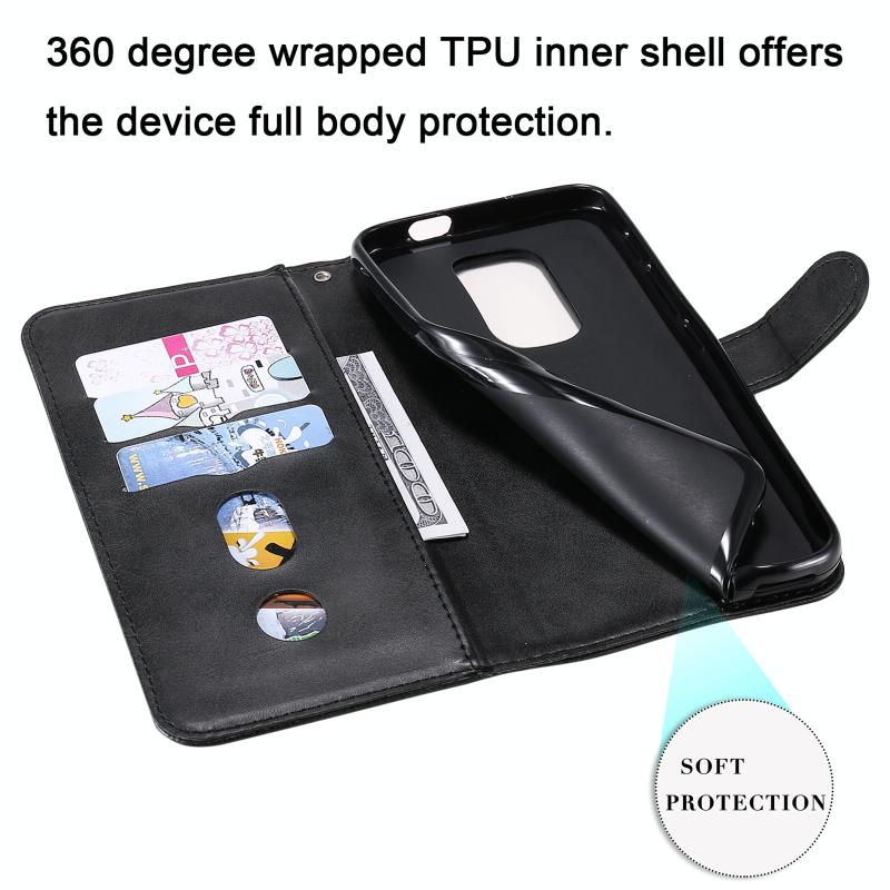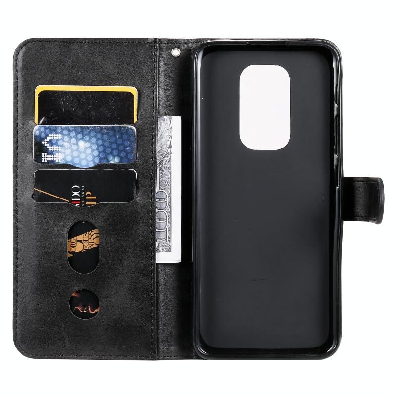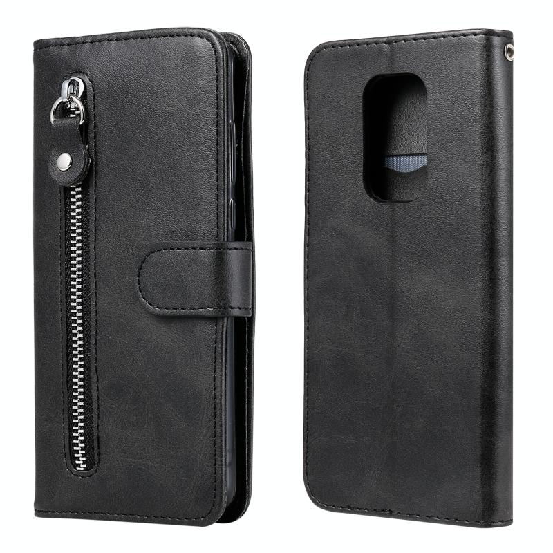 Θήκη δέρματος οριζόντιας αναδίπλωσης με υφή μοσχαριού και φερμουάρ για Motorola Moto G9 Play / Moto E7 Plus, με βάση στήριξης & υποδοχές καρτών & πορτοφόλι (Κόκκινο)