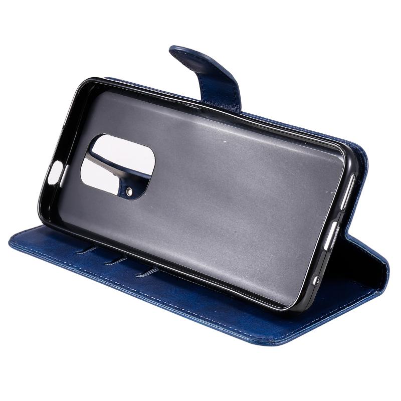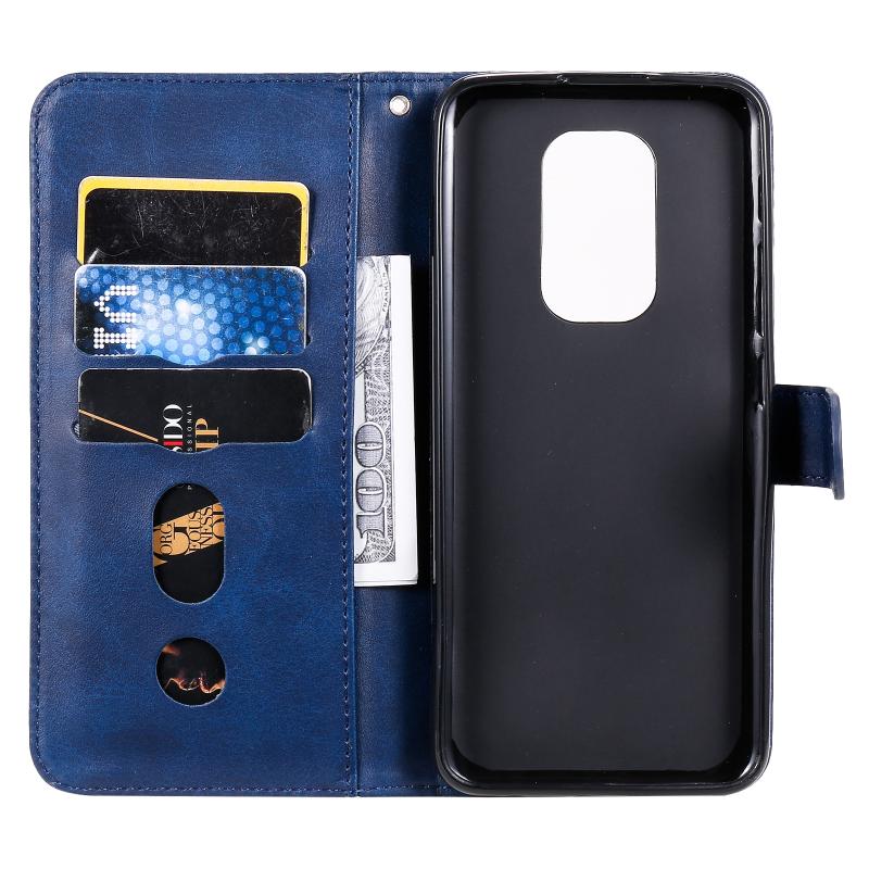 Θήκη δέρματος οριζόντιας αναδίπλωσης με υφή μοσχαριού και φερμουάρ για Motorola Moto G9 Play / Moto E7 Plus, με βάση στήριξης & υποδοχές καρτών & πορτοφόλι (Κόκκινο)
