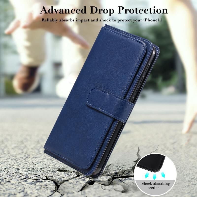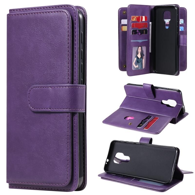 Για το Motorola Moto G9 Play Πολυλειτουργική μαγνητική χάλκινη πόρπη Οριζόντια Flip αμιγούς χρώματος δερμάτινη θήκη με 10 υποδοχές για κάρτες & πορτοφόλι & θήκη & κορνίζα φωτογραφιών (Μωβ)