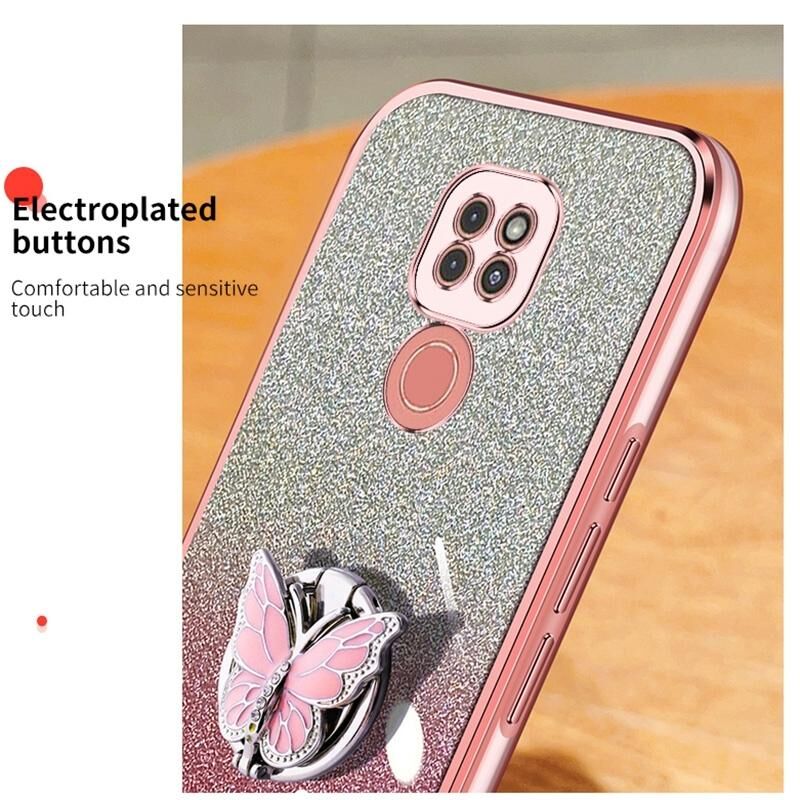 Για Motorola Moto G9 Play Επιμεταλλωμένο βαθμιδωτή Glitter πεταλούδα κάτοχος TPU υπόθεση τηλεφώνου (ασημί)