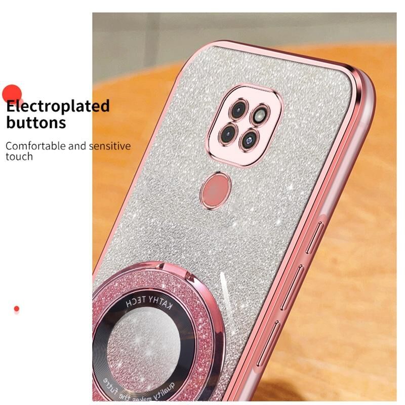 Για Motorola Moto G9 Play Επιμεταλλωμένο βαθμιδωτή Glitter στρογγυλή θήκη TPU τηλέφωνο υπόθεση (ρόζ)