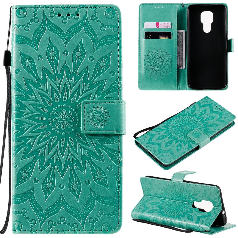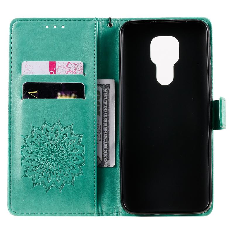 Θήκη για Motorola Moto G9 Play με ανάγλυφο σχέδιο ηλιοτρόπιου, οριζόντια, από δερματίνη PU με βάση στήριξης, θήκες για κάρτες, πορτοφόλι & λουρί (Χρυσό Ρόδινο).