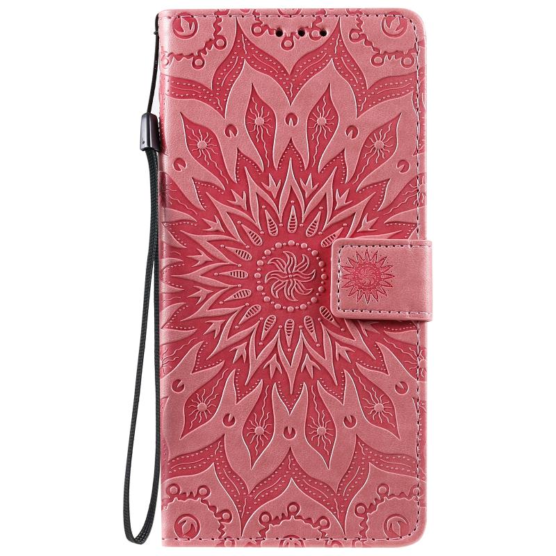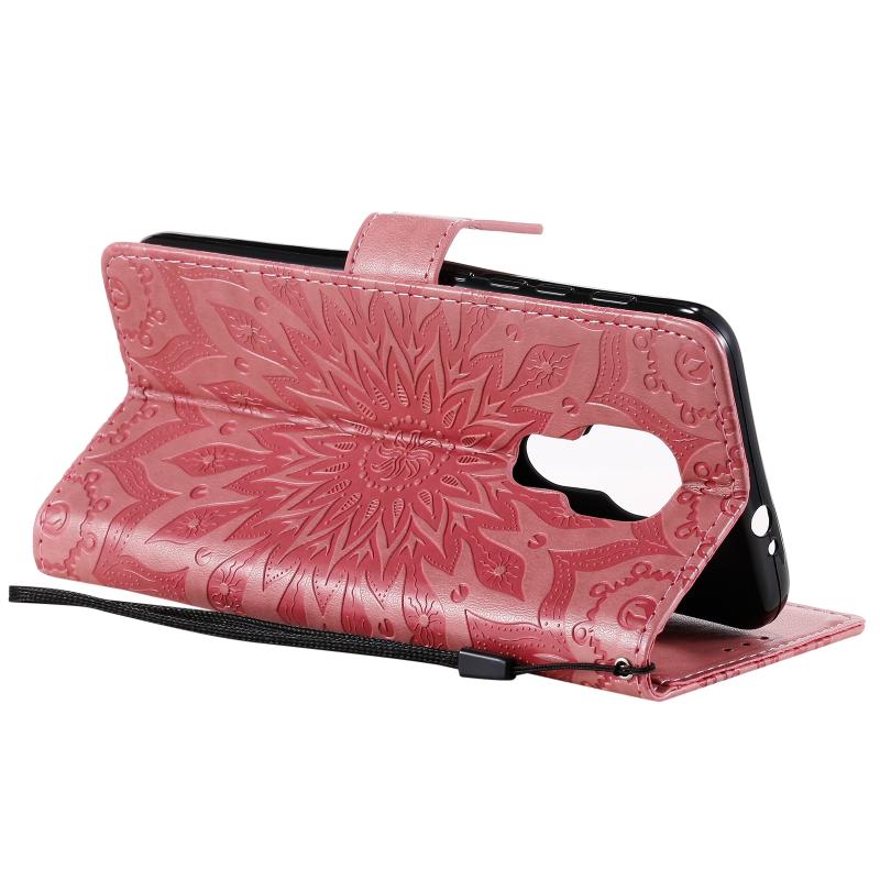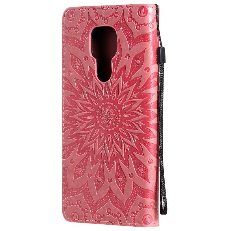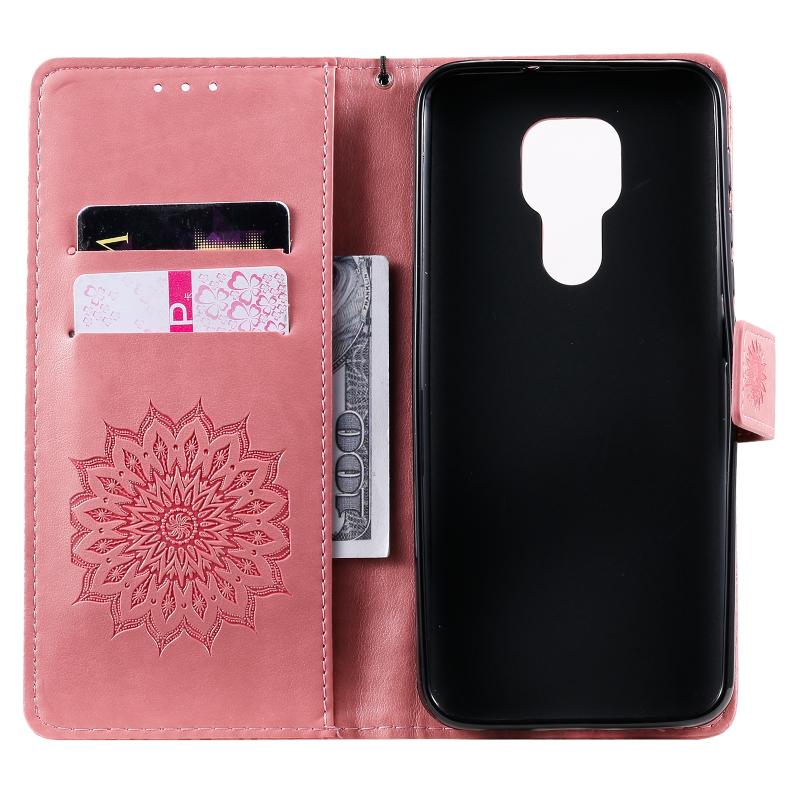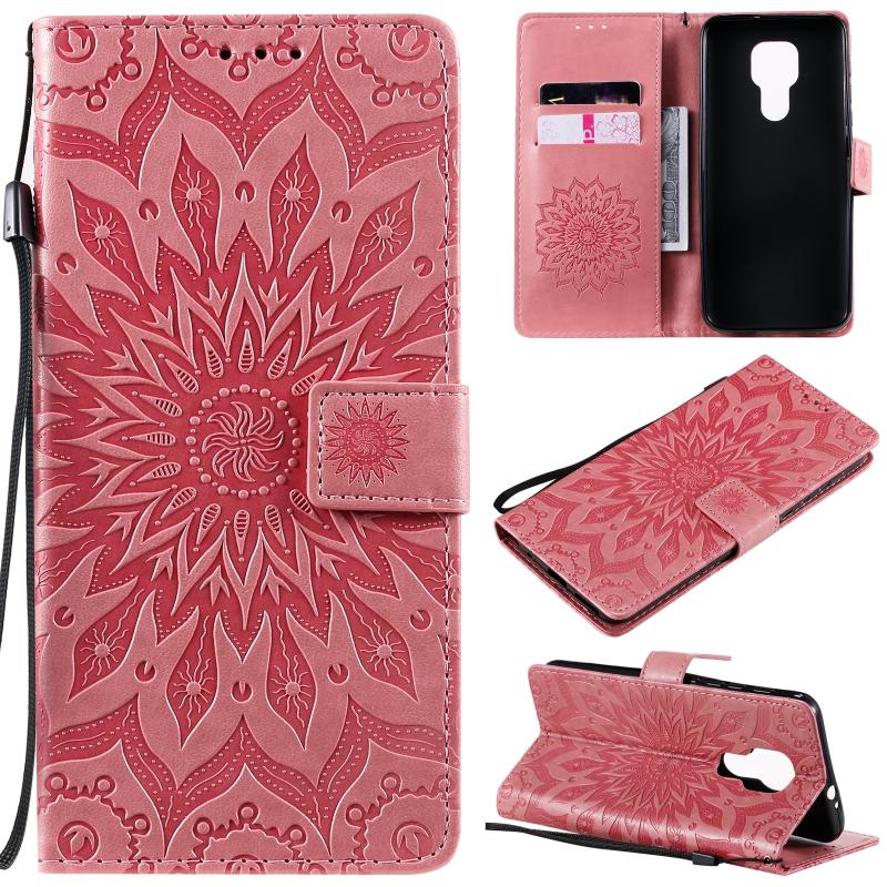 For Motorola Moto G9 Play Pressed Printing Sunflower Pattern Horizontal Flip PU Leather Case with Holder & Card Slots & Wallet & Lanyard(Pink)