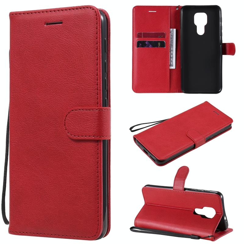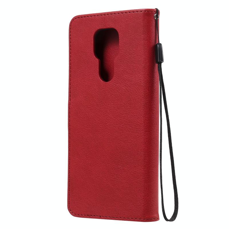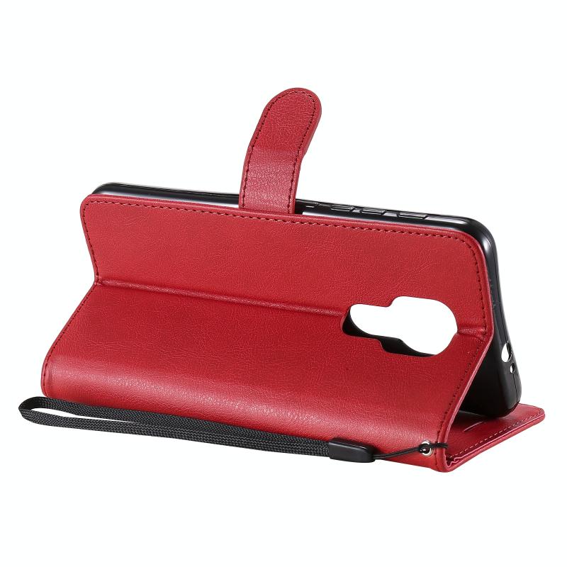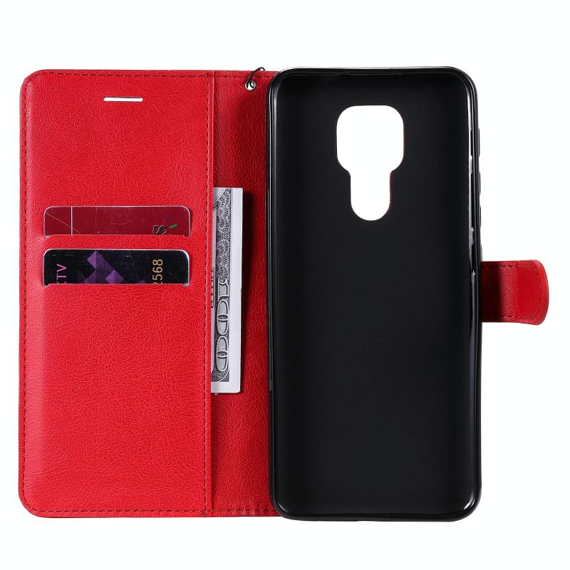 Θήκη δέρματος προστασίας οριζόντιας αναδίπλωσης για Motorola Moto G9 Play σε μονόχρωμο σχέδιο με βάση, θήκες καρτών, πορτοφόλι, κορνίζα φωτογραφιών και κορδόνι (Χρυσό Ρόδινο).
