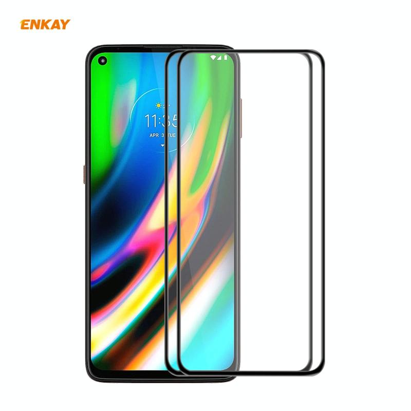 For Motorola Moto G9 Plus 2 PCS ENKAY Hat-Prince Anti-drop Full Glue Tempered Glass Full Screen Film Anti-fall Protector (ENKAY)
