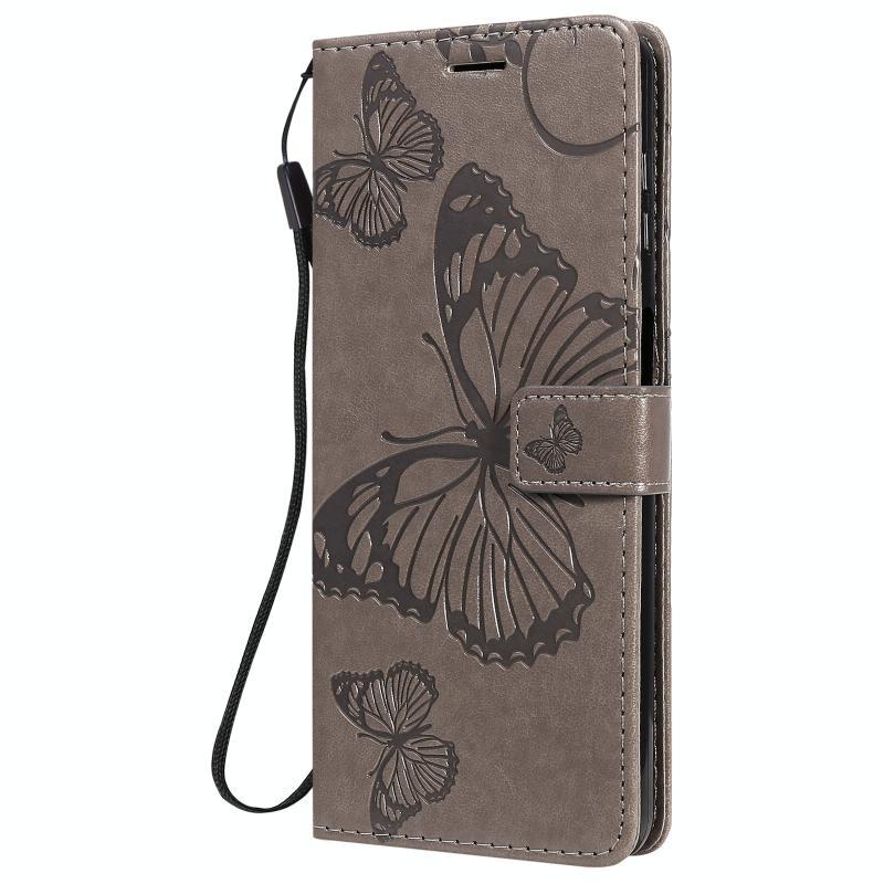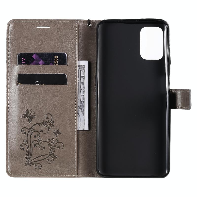 Θήκη δέρματος οριζόντιας αναδίπλωσης για Motorola Moto G9 Plus με ανάγλυφο σχέδιο 3D πεταλούδων, με βάση & υποδοχή κάρτας & πορτοφόλι (Χρυσό Ρόδι)