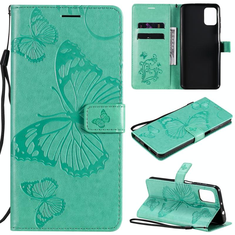 Θήκη δέρματος οριζόντιας αναδίπλωσης για Motorola Moto G9 Plus με ανάγλυφο σχέδιο 3D πεταλούδων, με βάση & υποδοχή κάρτας & πορτοφόλι (Χρυσό Ρόδι)