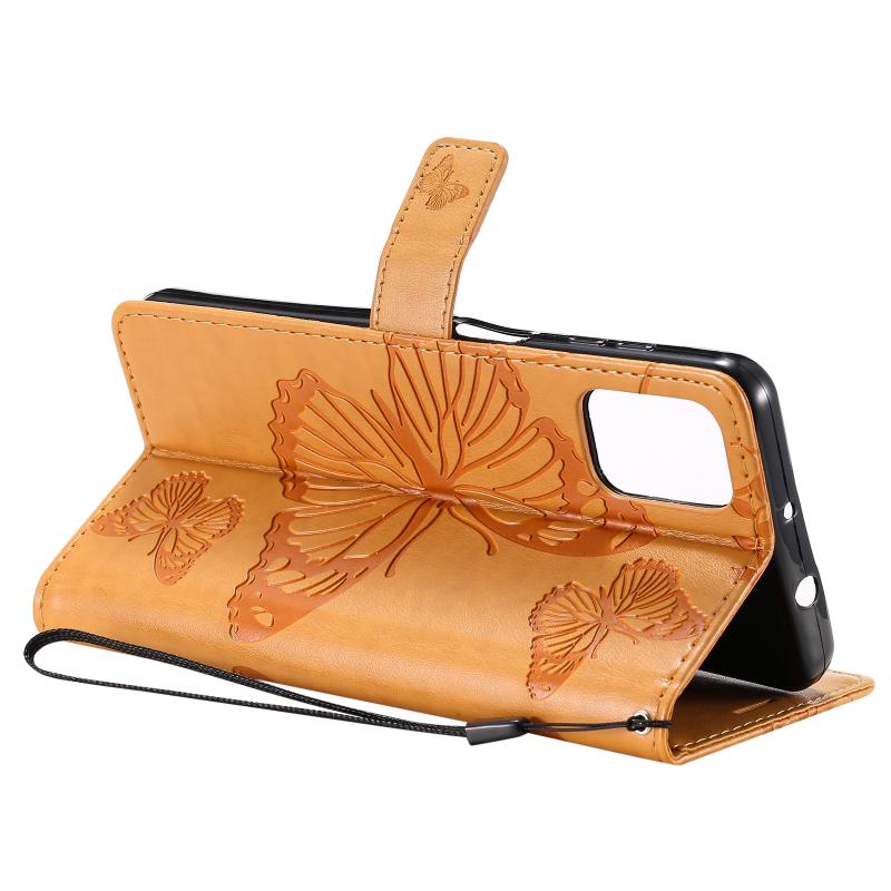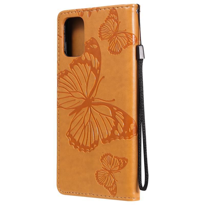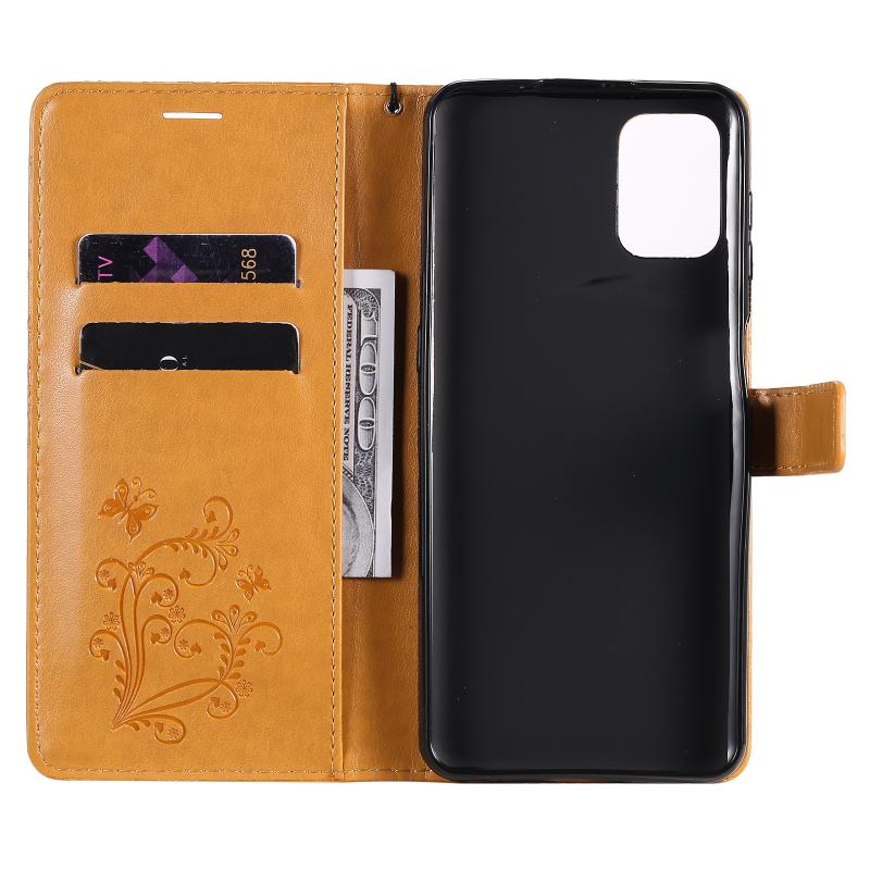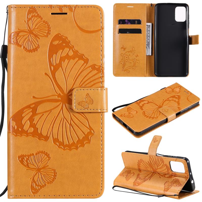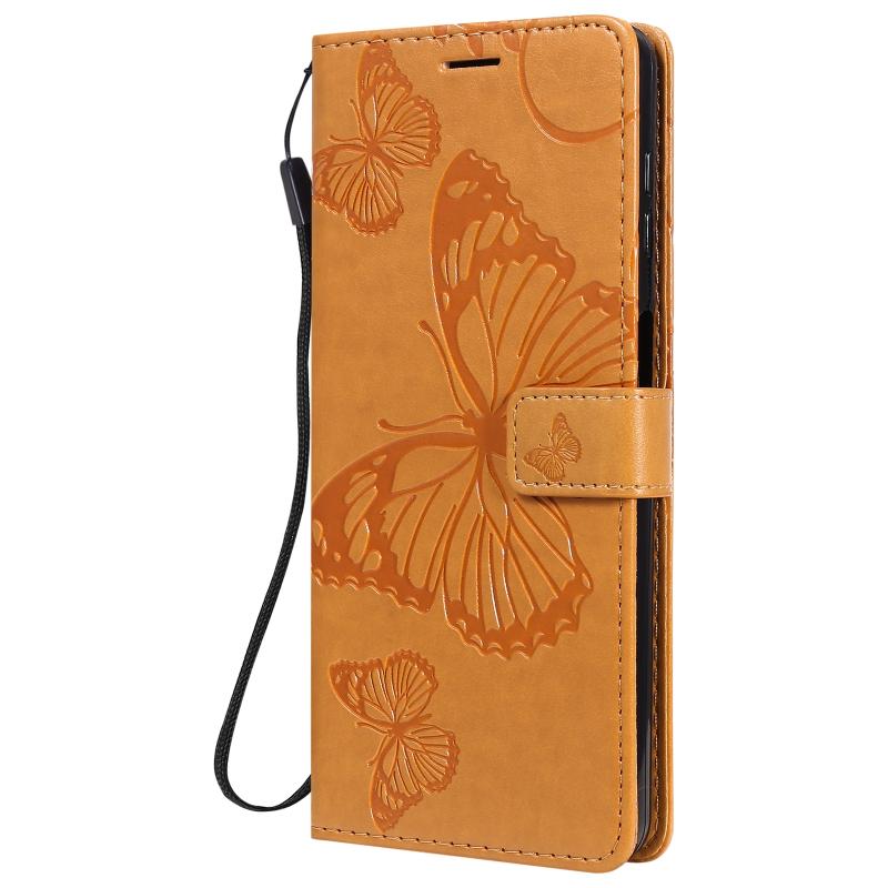 Θήκη δέρματος οριζόντιας αναδίπλωσης για Motorola Moto G9 Plus με ανάγλυφο σχέδιο 3D πεταλούδων, με βάση & υποδοχή κάρτας & πορτοφόλι (Χρυσό Ρόδι)